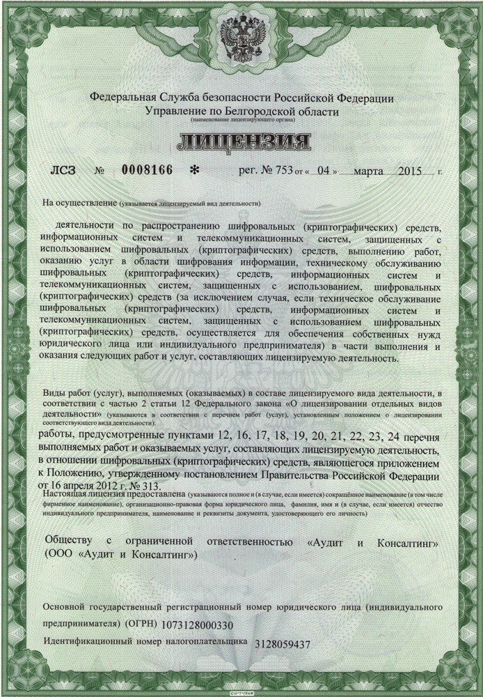 Лицензия ФСБ 31/00560466